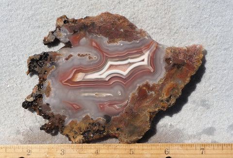 A relatively recent variety of agate from Mexico, Agua Nueva has vaulted to the top of the "must have" list of collector pieces. Known for its bright, fortification pattern, many times accented with moss, it makes spectacular show pieces.