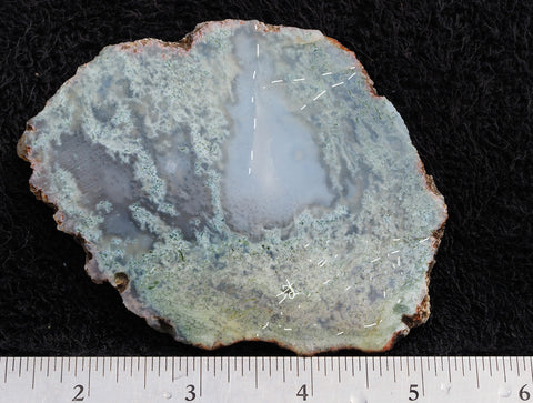 Shown wet. Not polished. Known flaws are shown as white lines in the final picture frame.