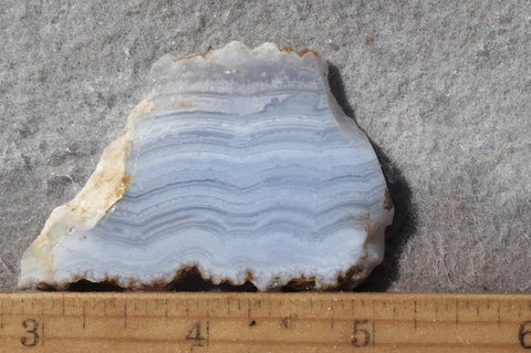 Blue Lace agate from Africa has a beautiful, lacy blue fortification pattern with occasional druzy pockets that makes very elegant, finished cabs and jewelry. A hard agate material that takes a good polish, it has provided the lapidary artist with a gorgeous medium for many years.