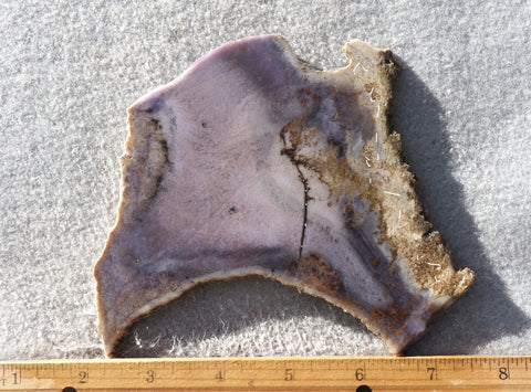 Noted for its lavender and violet hues displayed in a wide variety of patterns, Arizona Burro Creek agate is a versatile lapidary material. It is found in the desert of northwestern Arizona near the Bagdad Mine. It takes a good polish leaving a warm luster that makes beautiful cabochons.
