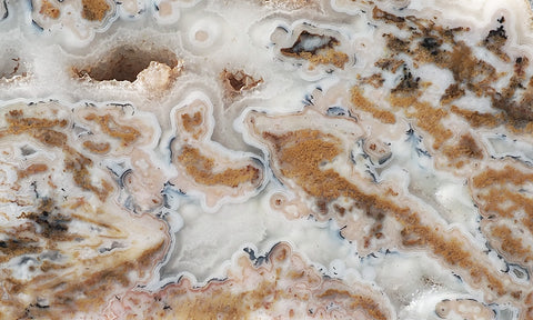 Cathedral agate from Mexico has been a long-time favorite with rockhounds everywhere. Named for its “spires” of fingerlike agate stalactites, it contains awesome plumy moss patterns with amazing detail. Normally predominantly browns and yellows, it occasionally has bright red/pink or purple accents. It makes spectacular cabs or magnificent display pieces. It has proven to be one of the keystone items in any agate collection.