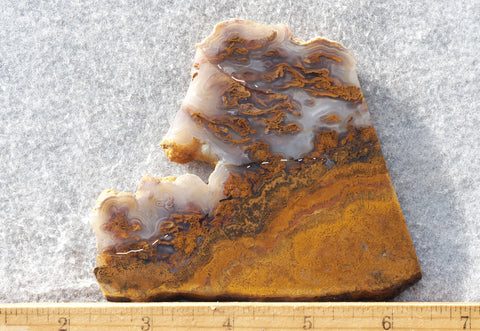 Cathedral agate from Mexico has been a long-time favorite with rockhounds everywhere.  Named for its “spires” of fingerlike agate stalactites, it contains awesome plumy moss patterns with amazing detail.  Normally predominantly browns and yellows, it occasionally has bright red/pink or purple accents.  It makes spectacular cabs or magnificent display pieces.  It has proven to be one of the keystone items in any agate collection.
