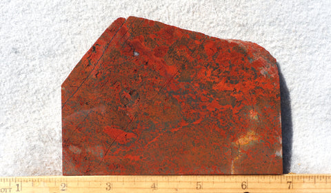Crater Lake plume jasper is a relatively rare material that comes from Oregon.  This material is noted for its intensely colored red inclusions on a dark background that are officially described as plumes.  Although the term “plume” might be a bit of a stretch for proper nomenclature, it still makes for very striking finished cabs or intarsia.  The rough was purchased from an old collection and was said to have been acquired many years ago.  It is relatively free of flaws and takes a good polish.