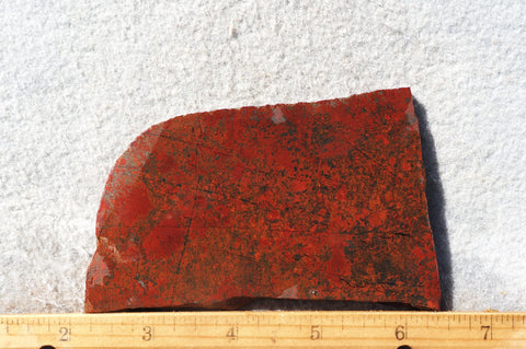 Crater Lake plume jasper is a relatively rare material that comes from Oregon. This material is noted for its intensely colored red inclusions on a dark background that are officially described as plumes. Although the term “plume” might be a bit of a stretch for proper nomenclature, it still makes for very striking finished cabs or intarsia. The rough was purchased from an old collection and was said to have been acquired many years ago. It is relatively free of flaws and takes a good polish.