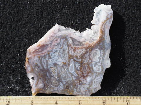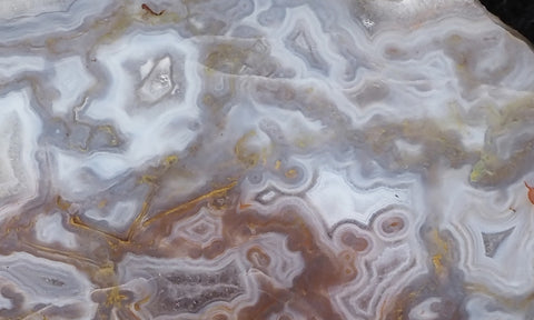 Durango Blue Agate was a new introduction from Mexico at the 2024 Tucson Rock Show. It is characterized by its soft blue/lavender or pink hues and its multitude of tubular and lacey inclusions, as well as beautiful drusy pockets. This agate will make extraordinary jewelry pieces and will finish with a superior polish.