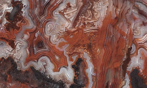 A magnificent specimen slab of Laguna Lace agate from Mexico.  Known for its bright, fortification pattern primarily white and gray it is often times highlighted with reds, pinks or raspberry color.