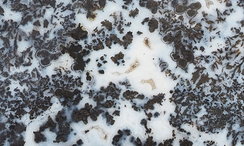 Medicine Bow plume agate comes from southeastern Wyoming, just west of Laramie, and is renowned for its sweeping black dendrites on a white agate field. Known worldwide as one of the premium dendritic agates, it is a definite asset to a complete collection and is highly valued for its cabbing characteristics. The varied dendritic pattern in each slab will make unique and strikingly beautiful cabs for jewelry.