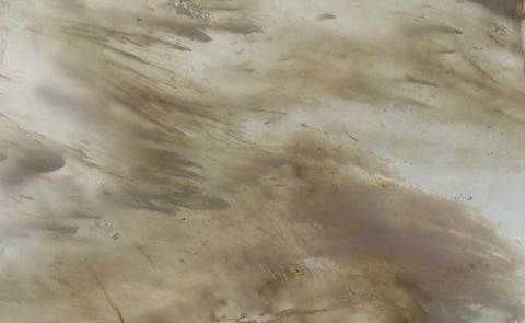 A translucent to milky agate which is beautiful, even without a great variety of color as it contains soft white ghosting fortifications or overlapping tube structures with creamy brown centers.  It is a solid agate that takes an excellent polish.  It makes beautiful jewelry especially when formed into doublets using lapis, red jasper or obsidian for a backing, which accentuates the inclusions.