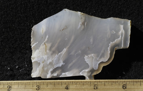 A translucent to milky agate which is beautiful, even without a great variety of color as it contains soft white ghosting fortifications or overlapping tube structures with creamy brown centers.  It is a solid agate that takes an excellent polish.  It makes beautiful jewelry especially when formed into doublets using lapis, red jasper or obsidian for a backing, which accentuates the inclusions.