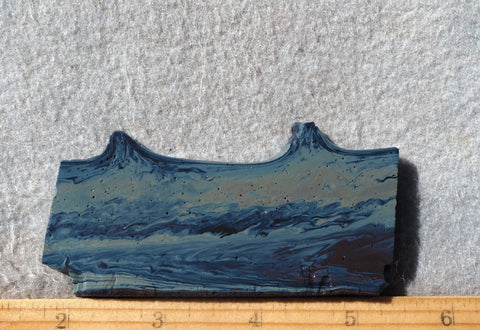 Sieber agate is a very unique lapidary material from Germany, which displays a subtle play of swirling patterns of dark electric blue. Although it is sold as “agate” it is technically a glassy slag left from an ancient copper smelting process over 1400 years ago. It characteristically contains numerous pinhead sized vesicles and works up much the same as obsidian. It produces distinctive cabs ideal for that “special” finished piece.
