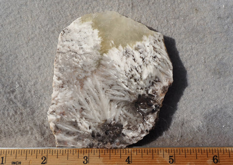 Snowflake Laguna from Mexico was a new introduction at the 2024 Quartzsite Rock and Gem Shows. This quartz and barite composite, that was layered between the Laguna Lace and Mimbres deposits, showcases a variety of delicate and intricate snowflake patterns. The material is prone to drusy pockets and pitting that can either be worked around or included in the cabochon design. The barite portion of the rock is about a 4 - 5 on the Mohs scale so it is a bit soft but still is easy to work with and held up well through the polishing process.