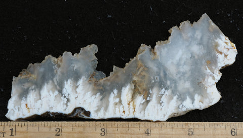 Stinking Water Plume Agate is a remarkable old agate that was discovered in the 1950s at Stinking Water Creek near Juntura, Oregon. It is distinguished by finely detailed, white feathery plumes or flames encased in translucent agate.   This material makes elegant stand-alone cabs, artistic live edge pieces featuring the dainty tubules and plumes, or a cab backed with a color layer for a striking doublet.