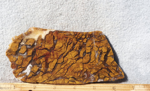 Stone Canyon jasper/agate is a unique lapidary material which shows its distinctive characteristic mix of brecciated jasper suspended in an agate matrix. It comes in lots of different colors, but primarily reds, yellows and browns. Polishes easily to make unique, eye-catching finished cabs. A great addition to any collection.