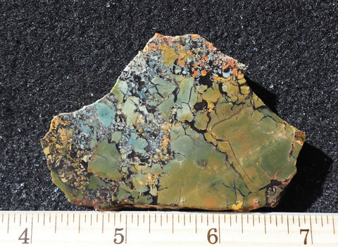 Whiskey Creek Jasper was initially discovered in 2000 on the Idaho side of the Owyhees, but it wasn’t until 2021 that through a coordinated mining effort the deposit became a reality and produced enough to be introduced at the January 2023 Quartzsite PowWow. Some of the jasper has characteristics very much like orbed Black Bruneau while other has a wildly brecciated pattern; both of which display rich earth tones in oranges, yellow, reds, greens, and browns. This material is super hard and will take an exceptional polish creating impressive cabs or display pieces. The material was in high demand and quickly sold out.