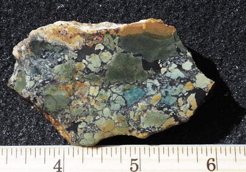 Whiskey Creek Jasper was initially discovered in 2000 on the Idaho side of the Owyhees, but it wasn’t until 2021 that through a coordinated mining effort the deposit became a reality and produced enough to be introduced at the January 2023 Quartzsite PowWow. Some of the jasper has characteristics very much like orbed Black Bruneau while other has a wildly brecciated pattern; both of which display rich earth tones in oranges, yellow, reds, greens, and browns. This material is super hard and will take an exceptional polish creating impressive cabs or display pieces. The material was in high demand and quickly sold out.