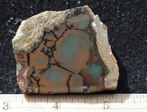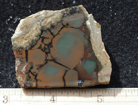 Whiskey Creek Jasper was initially discovered in 2000 on the Idaho side of the Owyhees, but it wasn’t until 2021 that through a coordinated mining effort the deposit became a reality and produced enough to be introduced at the January 2023 Quartzsite PowWow. Some of the jasper has characteristics very much like orbed Black Bruneau while other has a wildly brecciated pattern; both of which display rich earth tones in oranges, yellow, reds, greens, and browns. This material is super hard and will take an exceptional polish creating impressive cabs or display pieces. The material was in high demand and quickly sold out.