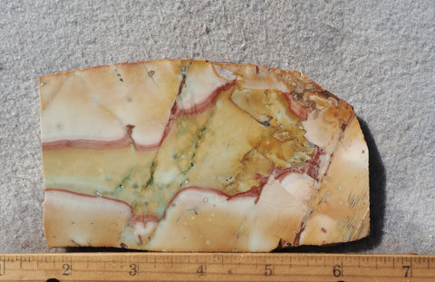 Crayola Jasper was actively mined around 2010 in northern Nevada.  It was immensely popular when it came on the market because of the wide variety of colors and patterns displayed.  The random scenes appear as if someone was doodling with a box of crayons, hence the name Crayola.  It is well known for its mix of pastel colors, the rarest being blue. It's a porcelain-type jasper that is hard and takes a nice polish, however it is also prone to fractures. There is very little original stock left and the claim has been inactive for years.