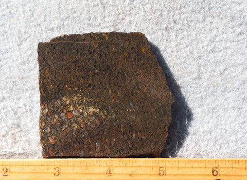 Dinobone, or petrified dinosaur bone, is one of the most rare and beautiful fossils in the world. It is the fossil of an animal bone containing minerals such as chlorite, chromium, iron-oxide and manganese that were deposited in the cells as it was formed. These different minerals create the varied colors and unique patterns found in the gem bones.  Black webbing in the cells is particularly beautiful due to the way it creates a contrasting difference from the yellow, orange, pink or red colors. Other colors that may be found in Gem Bone are brown, white, blue, green or gray. This is a great specimen that will  take a high polish and make truly unique cabs for jewelry!