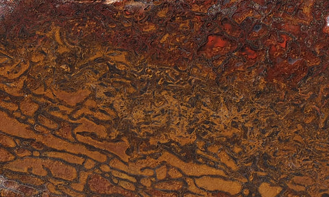 Dinobone, or petrified dinosaur bone, is one of the most rare and beautiful fossils in the world. It is the fossil of an animal bone containing minerals such as chlorite, chromium, iron-oxide and manganese that were deposited in the cells as it was formed. These different minerals create the varied colors and unique patterns found in the gem bones.  Black webbing in the cells is particularly beautiful due to the way it creates a contrasting difference from the yellow, orange, pink or red colors. Other colors that may be found in Gem Bone are brown, white, blue, green or gray. This is a great specimen that will  take a high polish and make truly unique cabs for jewelry!