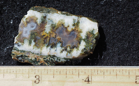 Linda Marie agate is an exciting new material from the ION (Idaho, Oregon, Nevada) area. It contains a wide variety of intricate, “plumy” colors and is noted for its extremely fine detail. A hard agate material, it takes a great polish and produces exquisite cabs. The inclusion of druzy pockets is an occasional bonus when working with this premium material.