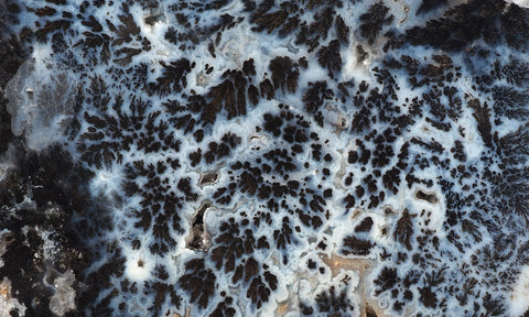 Medicine Bow plume agate comes from southeastern Wyoming, just west of Laramie, and is renowned for its sweeping black dendrites on a white agate field.  Known worldwide as one of the premium dendritic agates, it is a definite asset to a complete collection and is highly valued for its cabbing characteristics.  The varied dendritic pattern in each slab will make unique and strikingly beautiful cabs for jewelry.