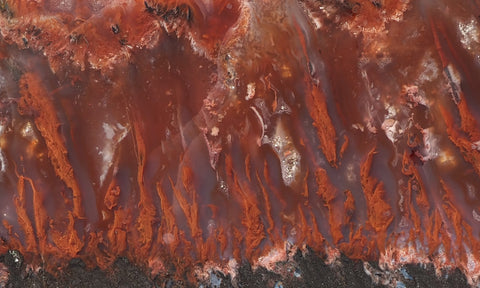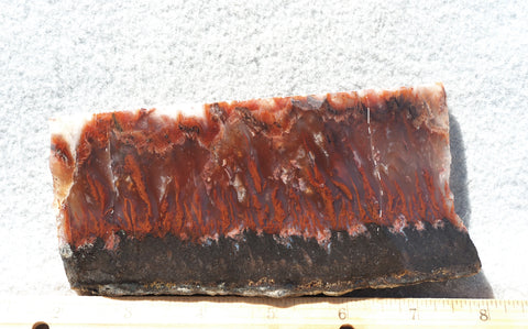 This semiprecious gemstone cabochon material is so named because of the characteristic flame inclusions found within the agate. Typical material displays brilliant red and orange flames that make fantastic collector’s slabs or showpiece cabochons for distinctive jewelry pieces.  The material and finished pieces will take a beautiful polish.