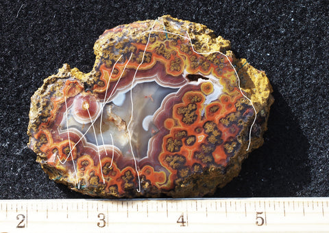 Moroccan agate comes in a very wide variety of colors and patterns, as it originates in widely disseminated locations in Morocco. Known for its brilliant colors and intriguing patterns, this material has had renewed interest in recent years as more agate has become available on the world market. It makes superb cabbing stock and takes an exceptional polish. The great variety makes it an excellent collector’s variety..