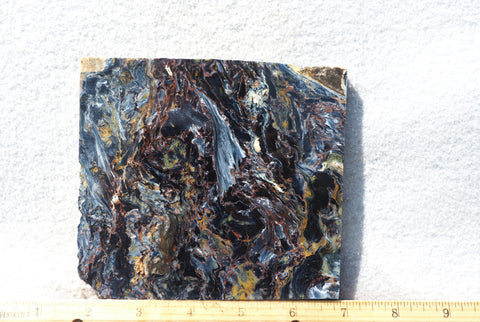 Pietersite is a very popular stone from Africa, noted for its brilliant chatoyant patterns of lightning blue/black and occasionally red/gold. Highly sought by the lapidary enthusiast, it produces spectacular finished pieces with great brilliance and flash. It is a hard silica material that has been formed by a rare geological replacement process, and is only found in quantity at 3 locations in the world.