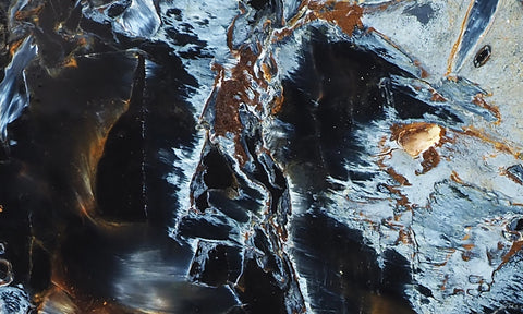 Pietersite is a very popular stone from Africa, noted for its brilliant chatoyant patterns of lightning blue/black and occasionally red/gold. Highly sought by the lapidary enthusiast, it produces spectacular finished pieces with great brilliance and flash. It is a hard silica material that has been formed by a rare geological replacement process, and is only found in quantity at 3 locations in the world.