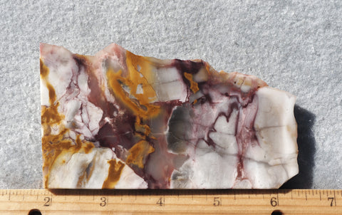 Sierra Sunset is a small deposit of new jasper out of Sierra County New Mexico. It is a very hard material and takes a good polish. The colors and patterns vary greatly; some are bold with deep orange, gold, red and purple while others are beautiful displays of soft pastel pinks and purple. Sierra Sunset provides a wide array of exciting cabbing material.