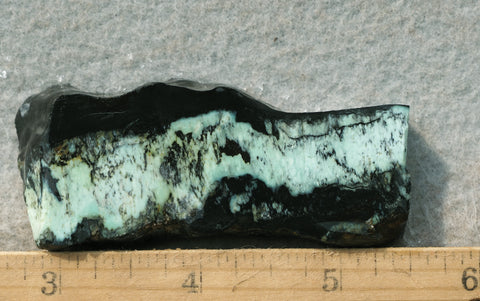 Variquoise is a highly valued combination of turquoise and variscite along with several obscure accessory minerals which make it extremely rare. This particular variety of variquoise is from the material collected years ago from Snowville, Utah and has recently become very popular as a premium item in the turquoise market. The variation of blue/green pattern with smoky gray/black accent make it a fabulous stone to work with and make exciting, finished pieces.