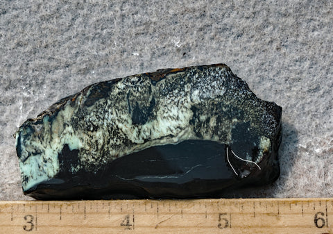 Variquoise is a highly valued combination of turquoise and variscite along with several obscure accessory minerals which make it extremely rare. This particular variety of variquoise is from the material collected years ago from Snowville, Utah and has recently become very popular as a premium item in the turquoise market. The variation of blue/green pattern with smoky gray/black accent make it a fabulous stone to work with and make exciting, finished pieces.
