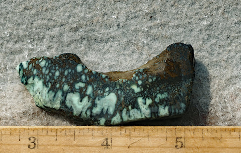 Variquoise is a highly valued combination of turquoise and variscite along with several obscure accessory minerals which make it extremely rare. This particular variety of variquoise is from the material collected years ago from Snowville, Utah and has recently become very popular as a premium item in the turquoise market. The variation of blue/green pattern with smoky gray/black accent make it a fabulous stone to work with and make exciting, finished pieces.