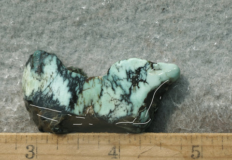 Variquoise is a highly valued combination of turquoise and variscite along with several obscure accessory minerals which make it extremely rare. This particular variety of variquoise is from the material collected years ago from Snowville, Utah and has recently become very popular as a premium item in the turquoise market. The variation of blue/green pattern with smoky gray/black accent make it a fabulous stone to work with and make exciting, finished pieces.