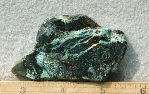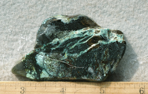 Variquoise is a highly valued combination of turquoise and variscite along with several obscure accessory minerals which make it extremely rare.  This particular variety of variquoise is from the material collected years ago from Snowville, Utah and has recently become very popular as a premium item in the turquoise market.  The variation of blue/green pattern with smoky gray/black accent make it a fabulous stone to work with and make exciting, finished pieces.