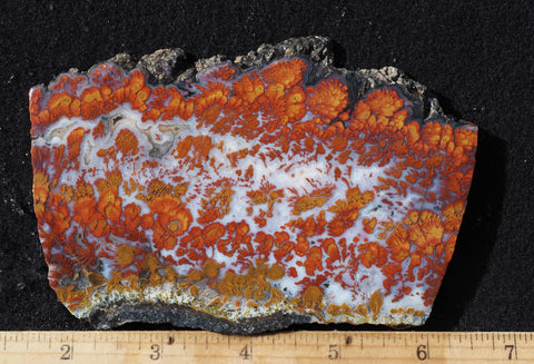 Wingate agate is considered to be one of the best, if not the best, plume agate material in the world. This "extinct" material hasn't been available to collectors for over 50 years. It came from a deposit that is now included in a military training area and is off limits to collectors. Famous for its brilliant, feathery plumes in red, gold, yellow and brown, it makes spectacular finished items or display pieces.