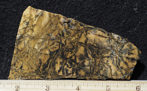 Yellow feather is a multi-color jasper found in Utah. The name "yellow feather" was inspired by the dark brown/black feather-like markings or manganese dendrites that cut across a colorful jasper background. The background colors vary due to iron inclusions, but they usually range in shades of yellow, orange, and tan.  This material will make very picturesque and beautiful cabochons.